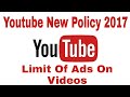 Youtube New Policy 2017 | Youtube added Limits of ads display on videos earn money online legit | |